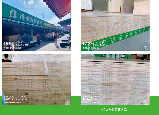 2022年7月中旬,雪寶家居集團督查部接到浙江寧波現代市場寧波鄞州恒達木業五金經營部板材涉嫌造假舉報后,派人到現場督查并向寧波市場監督管理局舉報投訴。通過查證,當事人寧波鄞州恒達木業五金經營部未經公司授權,在其經營場所陳列、對外銷售標有“雪寶”、“新雪寶”字樣的板材(“雪寶”、“新雪寶”字樣標在板材側面),涉案經營額共計23600元。且當事人店門口招牌和經營場所柱子上標有“香港雪寶板材”字樣。經查明,雪寶與當事人簽署的經銷合同時效在2017年年初就已到期。