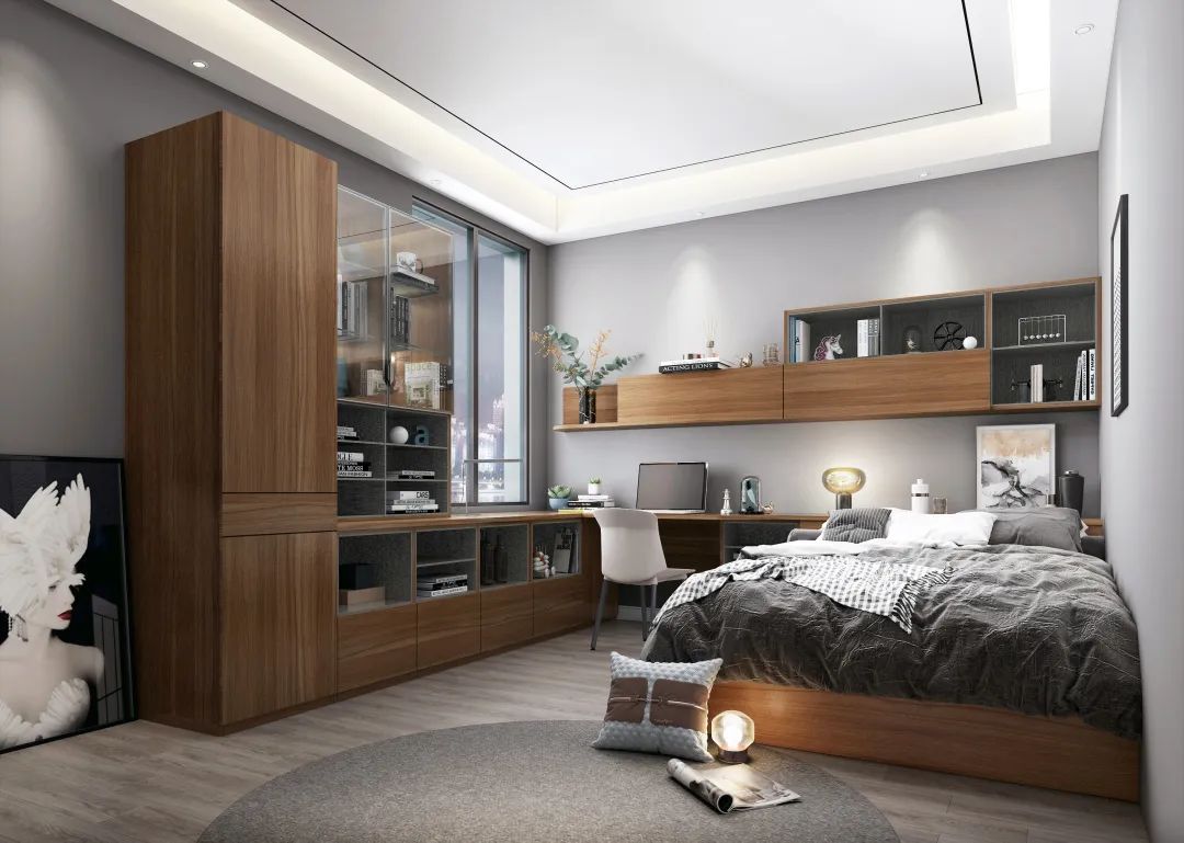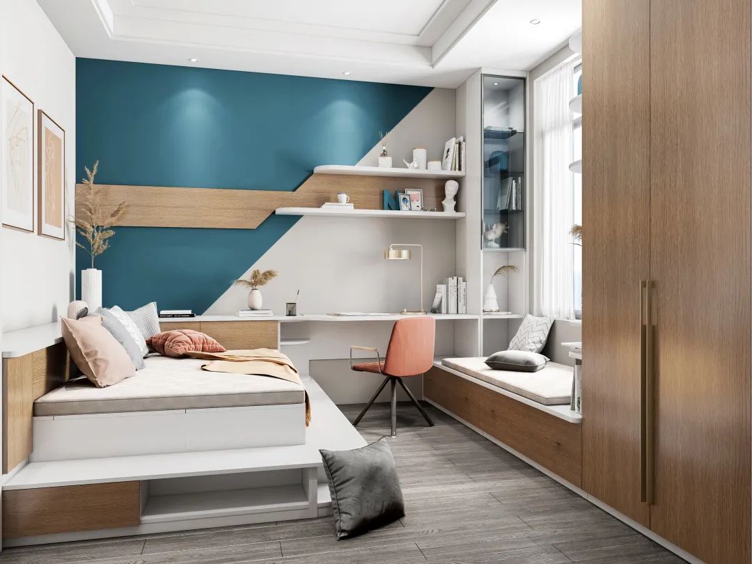 這種“功能三合一”的設(shè)計被廣泛運用在兒童房或多功能房,它可以同時滿足休息、學(xué)習(xí)和收納需求,實用且美觀。這種“柜+桌+床”的設(shè)計,不僅有舒適的工作區(qū),儲物收納+休閑會客+臨時客臥,一次滿足四大需求。