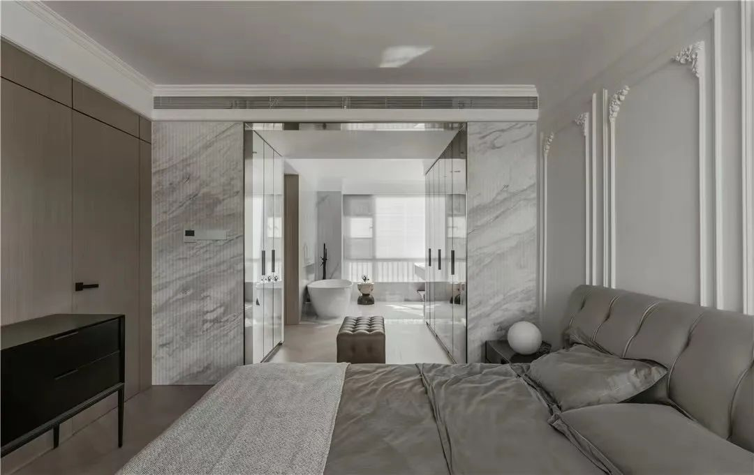 從舒適度出發(fā),一體化設計中每個細節(jié)都可以量身定制。比如衣柜、梳妝臺、門、背景墻等可以根據(jù)居住者的需求和習慣進行整體的設計。圍合出舒適優(yōu)雅的臥室空間,平衡實用與美感的雙重需求。