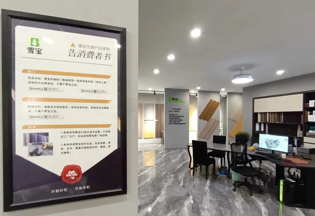 雪寶優裝門店配備三大展廳,即“材料展廳、體驗式展廳、共享展廳”。材料展廳突出裝修材料透明化,消費者可以清楚看到家具柜每個部分使用什么材料。體驗式展廳是指集時尚前沿、流行風格于一體的成品展示區,柜體柜門花色搭配通過專業設計師合理呈現,一比一還原家居真實體驗,真正實現所見即所得。而共享展廳則是滿足了如木工師傅、設計工作室、裝飾公司等合作渠道訴求,通過展示材料、呈現樣柜、真實裝修案例,讓消費者買得安心、用得放心。