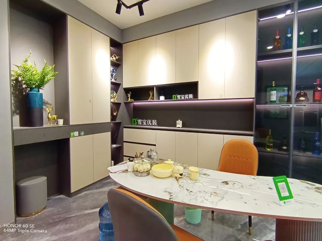 目前雪寶優裝產品體系已涵括生態板、涂裝板、主流柜門(納米康晶板/PET門板)、同色輔材、功能五金、地板木門、石膏板等全屋配套產品。不斷推陳出新,滿足消費者對于“環保、顏值、功能”等訴求。雪寶優裝通道店把當下最前沿、最受歡迎的裝修風格,以及最先進的主流產品,完美體現在門店中。