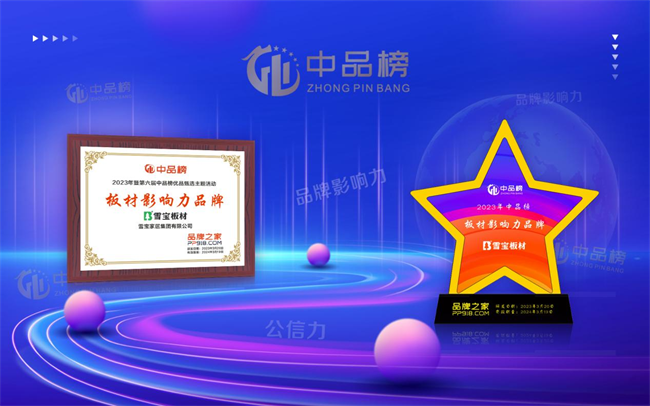 實力登頂!雪寶板材斬獲“中品榜2023年度板材十大品牌”大獎