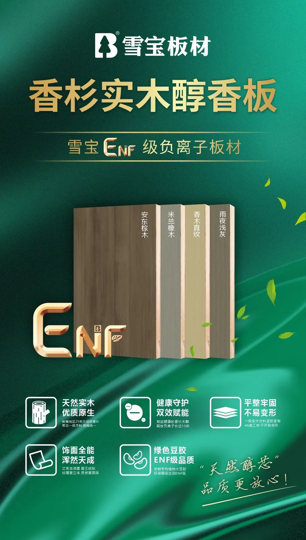 雪寶ENF級負離子香杉實木醇香板是為健康高品質生活量身打造的重磅新品,每一塊雪寶負離子醇香板都是天然實木的香味,是香杉文化藝術的氣息,是精益求精的品質和嚴格工藝的完美結合。高起點,高標準,高要求,高質量,鑄就高顏值強性能的雪寶板材!