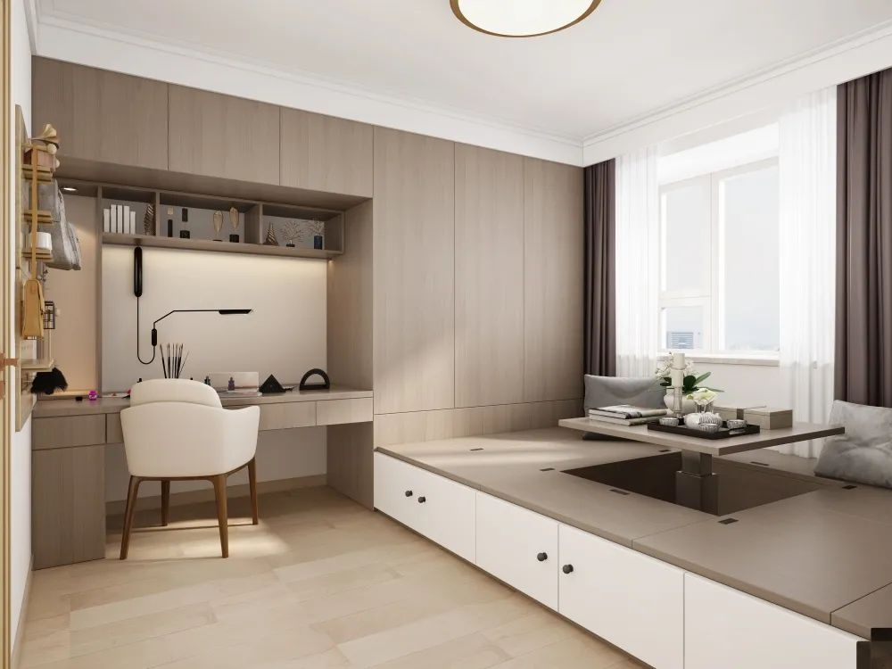在小臥室里做榻榻米或者增加個書桌,這樣臥室就既能讓我們睡覺休息、還可以滿足我們學習工作的需求。