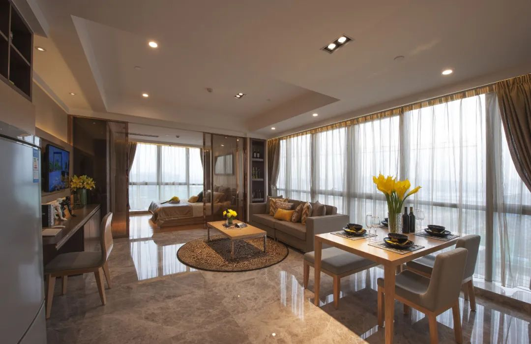但是臥室是休息的地方,小編建議可以在客廳與臥室之間設計一個隔斷,使用掛簾、半隔斷或玻璃隔斷都可以讓臥室與客廳形成可以靈活的可區分空間又能讓整個家居環境有一種浪漫的氣氛。