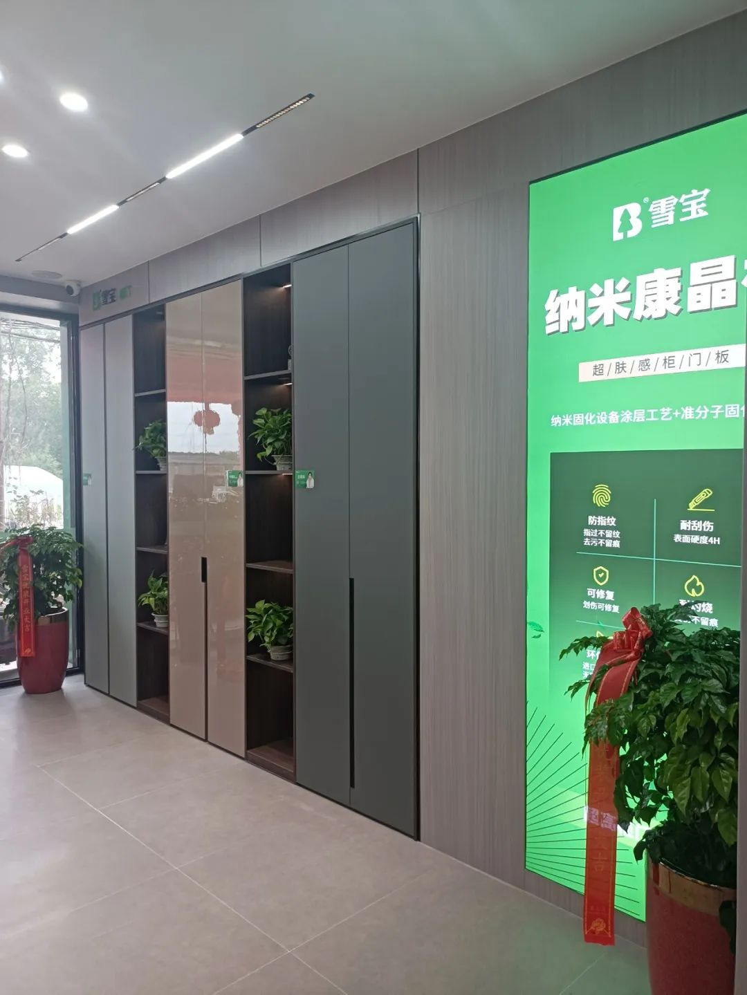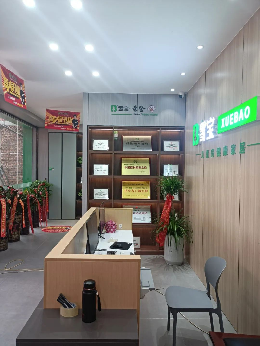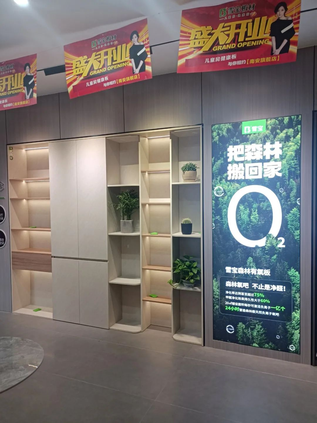 雪寶定位兒童房健康板的獨特差異化優勢,讓品牌理念和高環保高品質產品等標簽深入人心。雪寶泉州南安店在終端形象設計上,緊跟時代潮流,在門店產品陳列、全屋空間展示、門墻柜一體化設計等方面大力迎合消費趨勢,營造居家氛圍體驗感。