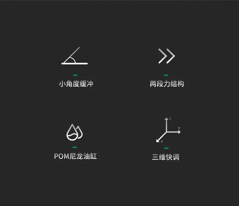 2、二段力結構,保柜更護門,緩沖閉合,隨意懸停;3、關門速度和力度可以調節,啟閉隨心自如,柜門開合更輕柔;4、三維快調,定位快速精準,柜門安裝更快更安全;5、進口POM(鉸杯內置)阻尼器,質量穩定,緩沖效果明顯,關門速度不受氣候與環境溫度影響、速度不變;6、表面三層電鍍處理工藝,有效防蝕防銹,經久耐用;