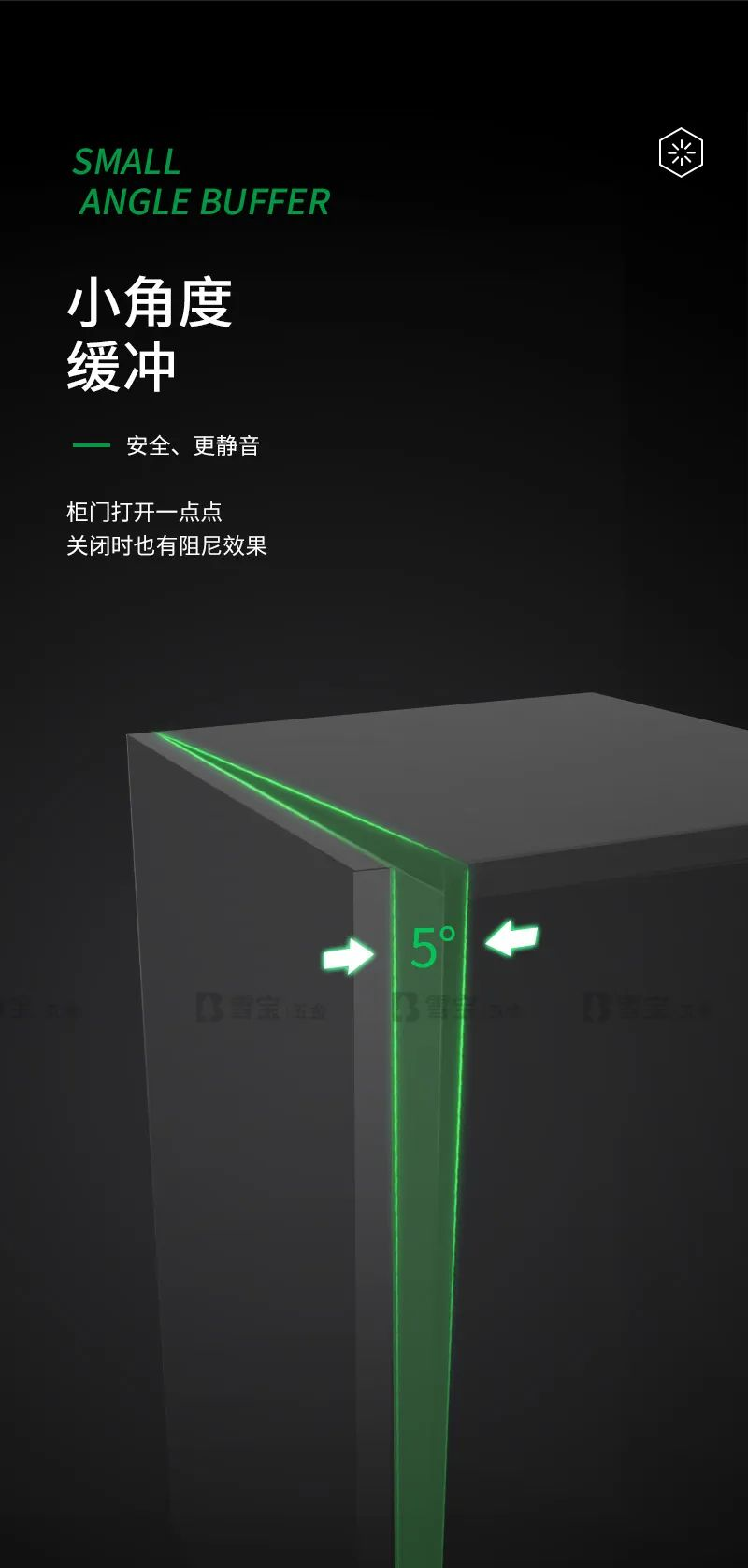 1、小角度緩沖,安全更靜音,任意角度開啟您的柜門都有緩沖效果,不會有撞擊聲音、更不會夾傷小寶寶的手指;