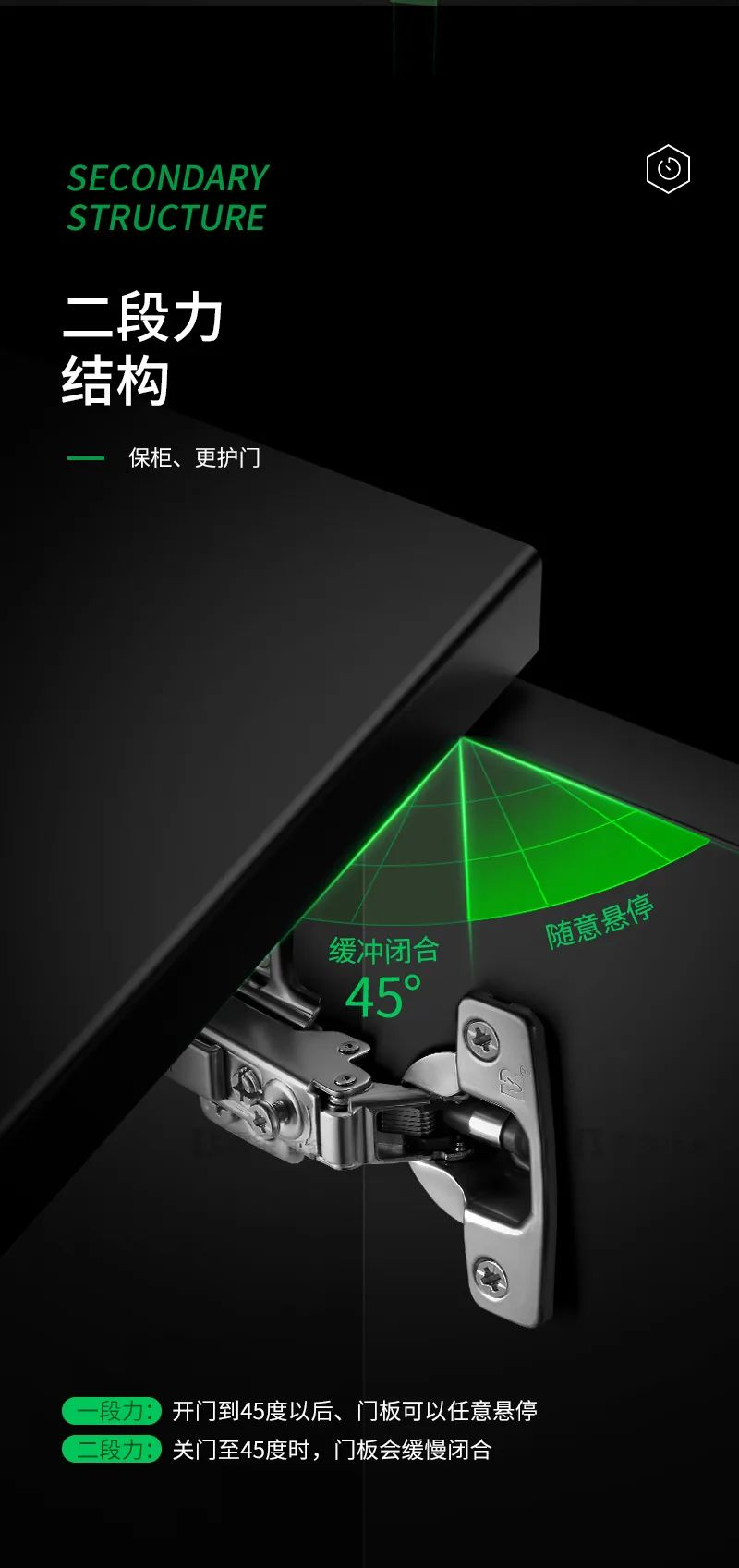 一個好的家具柜是由板材、柜門、五金配件共同組成的,而鉸鏈則是家具柜重要的五金件之一。好的鉸鏈能為家居生活帶來更順暢、耐用的使用體驗,是一扇好柜門的靈魂所在!