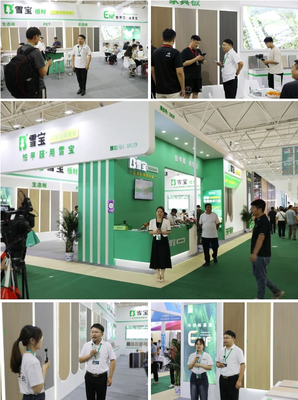 雪寶品牌華北營銷中心的業務精英們以飽滿的熱情、昂揚的面貌全力以赴全心投入,向各位來賓詳細介紹雪寶品牌以及參展的ENF級系列產品,極具競爭力的產品優勢以及引領潮流的多樣花色,吸引了眾多參觀者們的關注和喜愛。同時中國木業網深度采訪和對話雪寶雪寶華北營銷中心營銷總監陳總。并且相關領導及廣大客商紛紛走進雪寶展位進行參觀和交流合作,成績斐然。本屆臨沂木博會,大量意向客戶來到展位現場參訪了解品牌實力,并達成進一步的合作意愿,意向度高達95%以上!