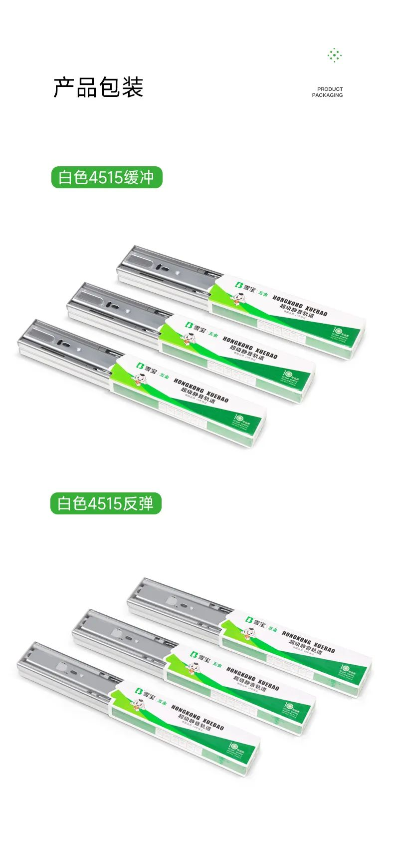 滑軌抽屜在現代家具中是必不可少的組成部分,而在整個抽屜的設計中,小小的滑軌對整個抽屜的質量可有著舉足輕重的影響,那些大大小小的抽屜能否自由順滑地推拉、承重如何,全靠滑軌的支撐。雪寶4515緩沖(反彈)三節軌→靜默守護居家生活的溫柔時光!