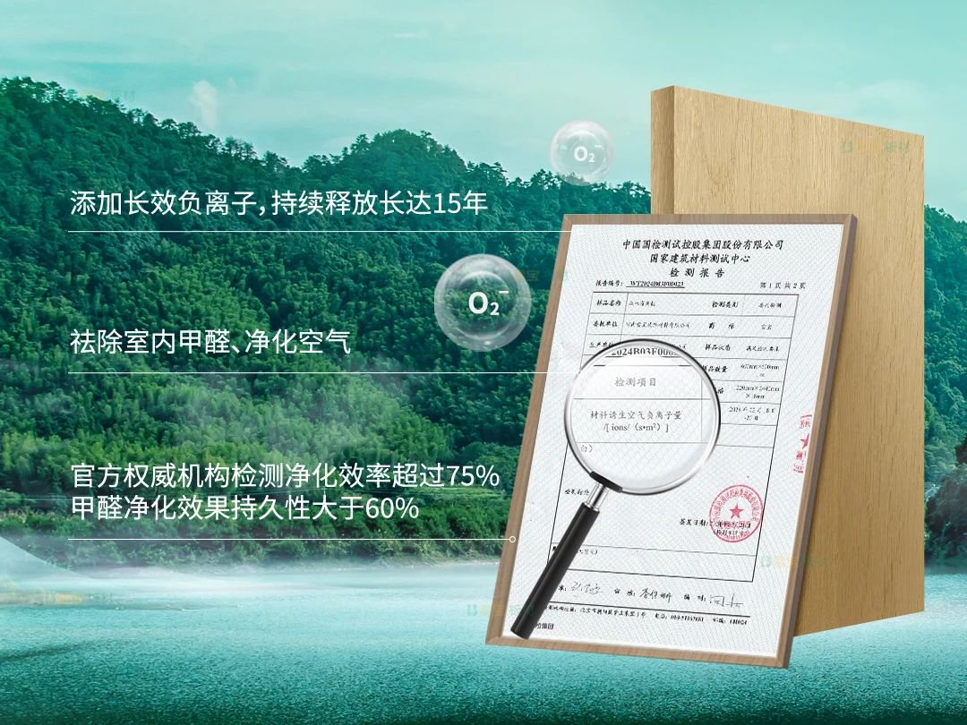 使用自主擁有的國家發明專利大豆膠(利用純天然、可再生的豆粕為原料,精萃大豆活性蛋白,濃縮為性能優異的生物質大豆膠)進行黏合,0醛添加,環保等級達到新國標ENF級,無需擔心甲醛釋放問題,且具有卓越的耐水性、粘結性,品質穩定,是您打造家居空間的放心之選。
