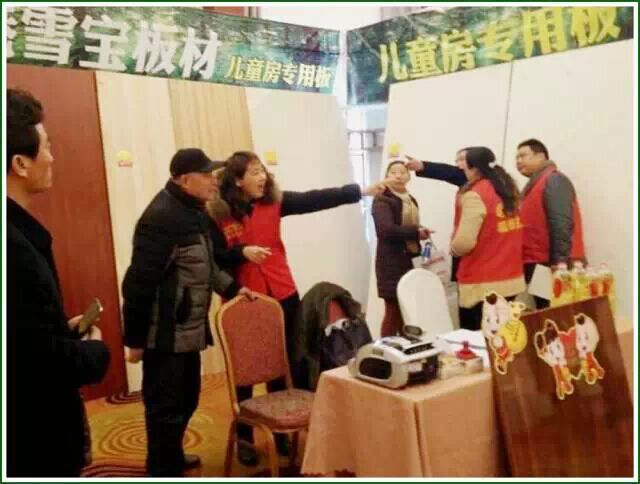 在活動現場,雪寶與廣大市民傾情互動,不斷向前來的消費者講述雪寶兒童房專業板的環保性及公司一直以來專注品質、力爭為消費者提供最優品質、最佳服務及最具性價比產品選擇的經營理念。通過銷售人員的專業講解讓消費者對雪寶產品有了切身感受,現場購買熱情也隨之高漲。而此次雪寶所推出的碧柳生姿變色生態板以其領先行業板材水準的神秘色彩與獨特品味向射陽人民展示了雪寶不斷創新求變的品牌理念。