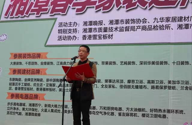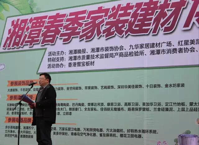 2015年3月13-15日, “2015春季家裝建材博覽會(huì)•湘潭站”在九華家居建材廣場正式拉開序幕。此次活動(dòng)由湘潭晚報(bào)、湘潭市裝飾協(xié)會(huì)、九華家居建材廣場、紅星美凱龍家居廣場主辦,湘潭市質(zhì)量技術(shù)監(jiān)督局產(chǎn)商品檢驗(yàn)所、湘潭市消費(fèi)者協(xié)會(huì)特別支持,雪寶板材作為此次活動(dòng)獨(dú)家協(xié)辦單位亮相于此次博覽會(huì)中,成為備受矚目的品牌。