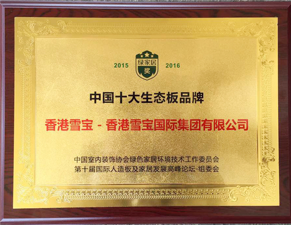 雪寶榮獲“2015—2016年度中國十大生態板品牌”