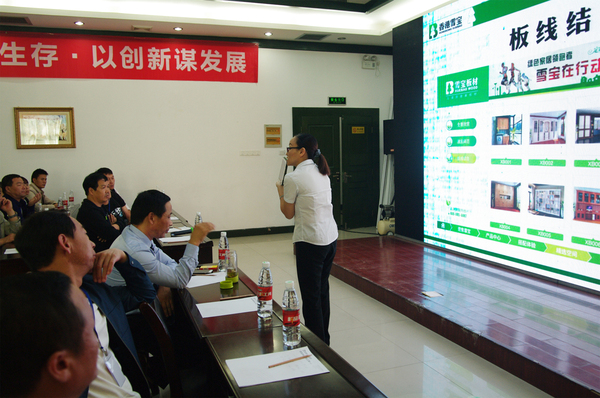 雪寶品牌在板材行業的穩步發展,離不開緊跟市場步伐和對產品品質及創新的執著追求。雪寶華北營銷總監凌總就本次“三新”發布會致辭,凌總在發布會中對品牌未來的發展規劃做了全面的闡述,并對西北地區的發展和營銷政策進行了詳細的講解,同時對劉總舉辦的這次會議給予了極高的肯定和贊譽。