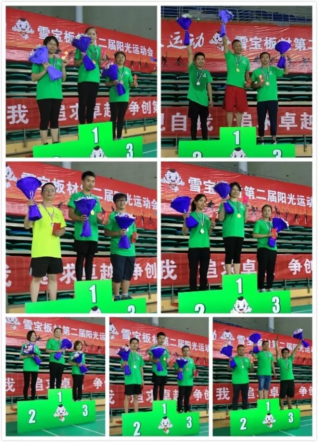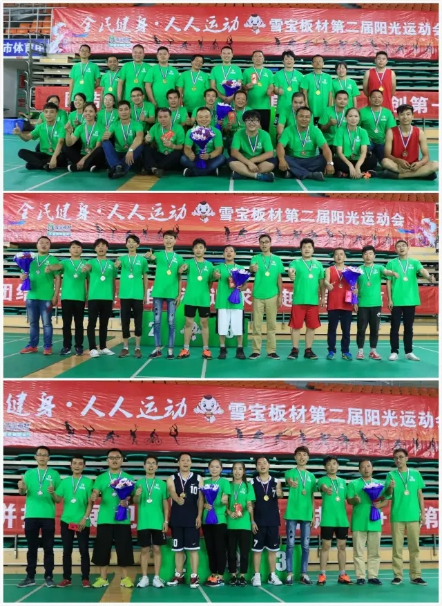 雪寶板材第二屆陽光運動會在一片熱情洋溢和滿載而歸中落下帷幕,而雪寶人對健康環保的無限追求將一直持續,在誠信、精業、創新、共贏的雪寶價值觀指導下,雪寶人將把軍隊文化、學習文化、家庭文化繼續發揚廣大,共創美好未來!