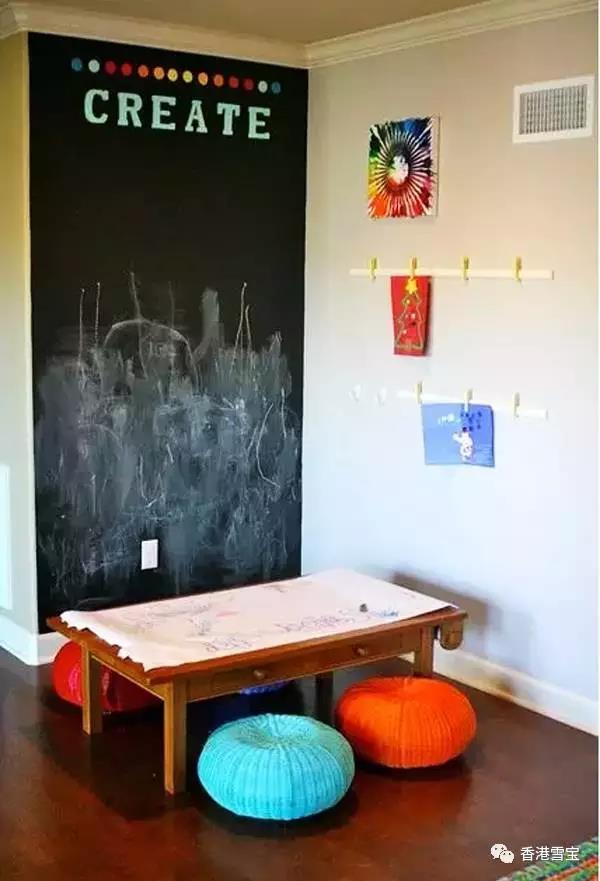▲孩童時期正是想象力最旺盛的時候,何不給孩子一個發揮的空間呢?一面黑板墻正好可以滿足孩子的需求和想象。
