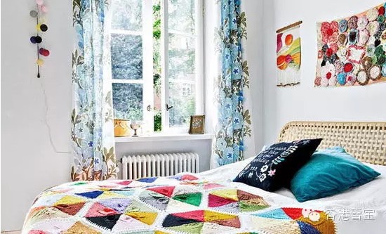 家的一角。在大量素色的硬裝環境下用一些豐富的顏色是首選,避免空間顯得過于平淡,毯子的樣式很有趣味。