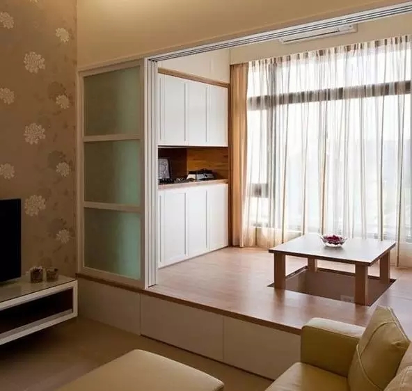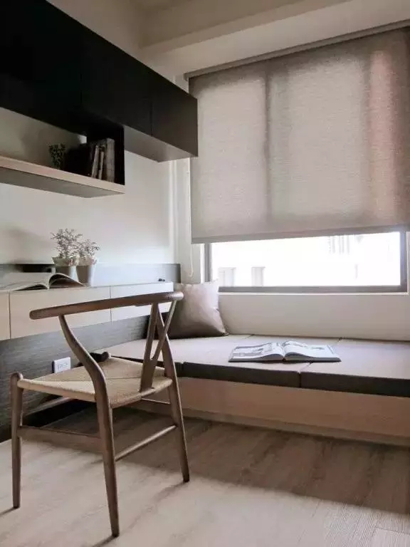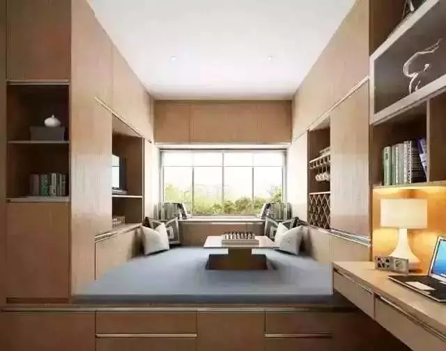 陽臺榻榻米讓封閉式陽臺不再沉默,而榻榻米的吊柜設(shè)計讓墻壁空間盡可能的利用起來,帶來更多的收納可能。