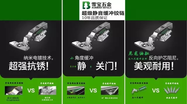 五金配件雖小,但與家具的良好使用緊密相關,五金配件的質量尤為重要。板式家具多由五金件連接,挑選板式家具時,注意開關柜門,開啟抽屜有無噪音、是否平穩(wěn)、輕松、順滑。同時,五金件的表面是否有剝落、腐蝕、毛刺的現(xiàn)象。香港雪寶五金十年品質保證、現(xiàn)代電鍍工藝;進口原裝配件、產(chǎn)品結構科學;款式新穎獨特、外觀設計專利;標準尺寸參數(shù)、系列產(chǎn)品齊全。
