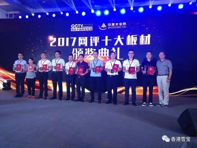 2017年8月27日,由綠色中國網絡電視中心、中國木業網主辦的第一屆板材行業“塑品牌、造未來”高峰論壇暨2017中國木業網十大板材頒獎典禮在杭州良渚君瀾度假酒店盛大召開。“匯世界目光,創企業品牌”,本次活動匯聚眾多板材行業優秀品牌,共商品牌未來發展之路。香港雪寶板材受邀出席并在此次大會中再創佳績——榮膺“十大環保板材品牌”!
